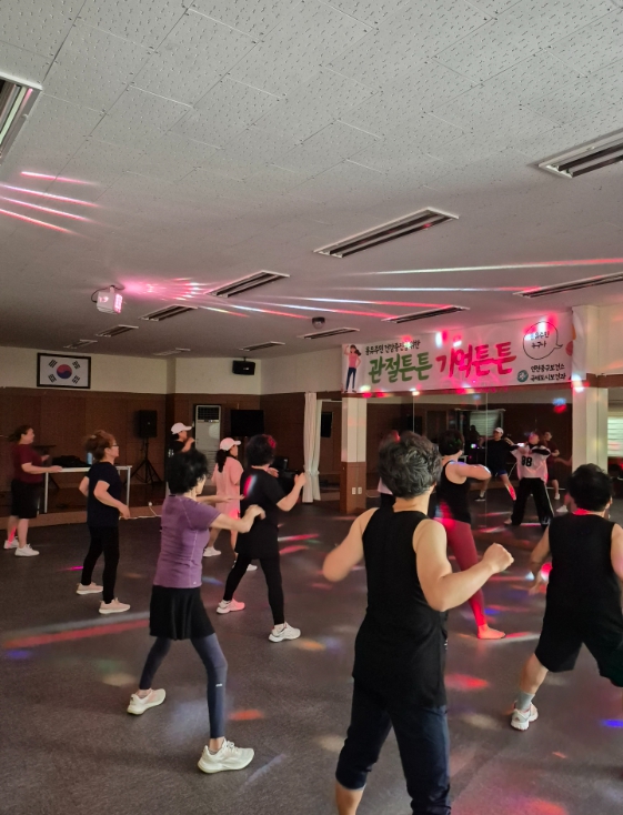 먼저 ‘관절튼튼’은 어르신들이 신나는 음악에 맞춰 스트레칭, 근육운동, 자세 교정 등을 체험하며, 퇴행성 관절염 예방과 근력 강화를 도모하는 운동 프로그램이다. 전문 강사의 지도로 안전하게 운영되고 있다.