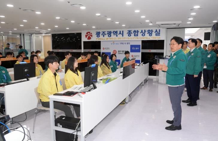 광주시는 첫째날인 18일 오전 5시45분 전시 필수인력 공무원을 대상으로 비상소집 명령을 발령해 비상연락망, 비상소집 문자·전화 발송장비 가동 여부 등을 집중 점검한다.