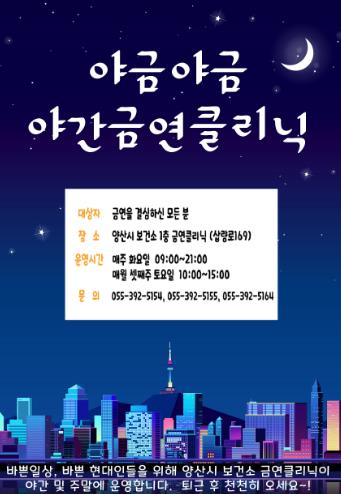 이는 주중에 금연 서비스를 이용하지 못하는 시민들에 대한 접근성과 금연 성공률을 높이는데 중점을 두고 있으며, 운영 시간은 매주 화요일 오후 6시부터 오후 9시까지, 매달 셋째 주 토요일 오전 9시부터 오후 12시까지 운영한다.