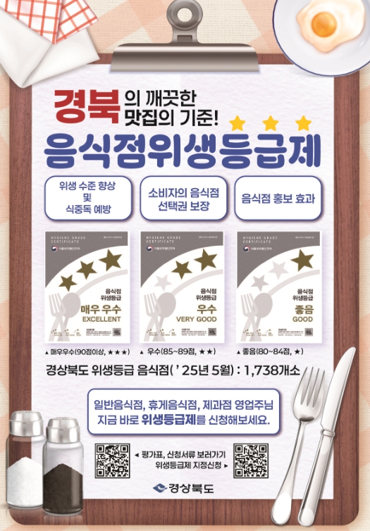 한편, 현재 영주시에는 매우 우수 41개소, 우수 4개소, 좋음 3개소 등 총 48개소의 위생등급 음식점이 지정되어 있으며, 시는 앞으로도 위생등급제 확대를 통해 시민이 안심하고 이용할 수 있는 외식 환경 조성에 적극 나설 계획이다.