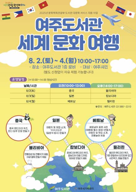 세계화가 가속되는 현대 사회에서 다문화 이해와 존중은 필수적인 시민 역량으로 부각되고 있다. 여주시 역시 외국인 주민 및 다문화 가족의 증가에 따라 문화 간 소통과 포용의 중요성이 커지고 있으며, 이번 프로그램은 지역 주민들이 도서관이라는 공공문화공간에서 자연스럽게 다양한 문화를 접하고 이해하는 계기를 마련하고자 기획됐다.