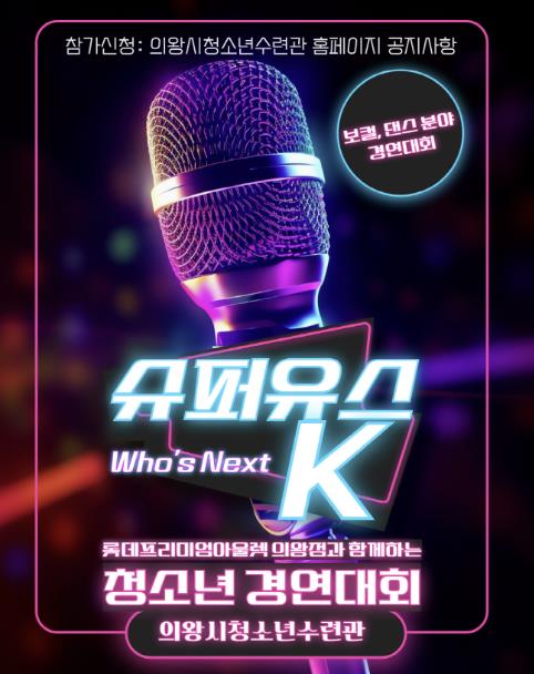 본 대회는 1차 영상 예선, 2차 본선 무대로 구성되며, 본선 경연은 8월 30일 토요일 롯데프리미엄아울렛 의왕점 특설무대에서 지역 주민 누구나 자유롭게 관람이 가능하다.