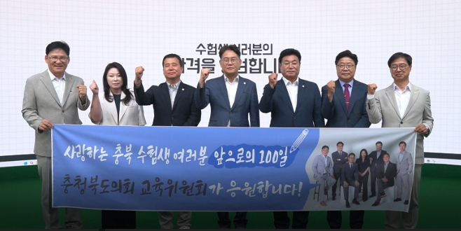교육위원들은 “힘든 날들을 묵묵히 견뎌 온 충북의 수험생들에게 아낌없는 응원과 격려를 보낸다”며 “결과보다 중요한 건 치열하게 노력한 과정이므로 열심히 노력한 만큼 마지막까지 최선을 다해달라”고 말했다.