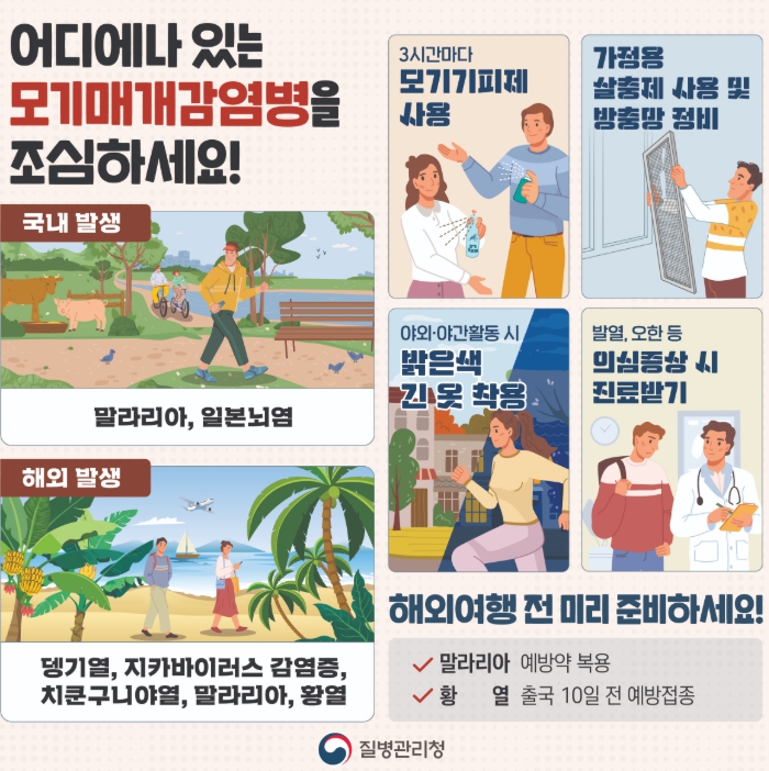 거제시는 해외여행 전 방문 국가의 감염병 발생 현황을 반드시 확인하고, 여행 중 예방 수칙을 철저히 준수하는 것이 무엇보다 중요하다며 귀국 후 발열, 발진, 근육통 등의 증상이 나타날 경우 즉시 의료기관을 방문하여 해외여행력을 알리는 것이 신속한 진단과 치료에 큰 도움이 된다고 당부했다.