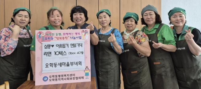 한편, 오학동 새마을부녀회는 매년 김장 나눔, 반찬 봉사 등 다양한 봉사활동을 통해 지역사회 복지 증진에 기여하고 있다.