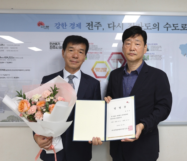 윤동욱 (재)전주관광재단 이사장(전주부시장)은 6일 용선중 초대 대표이사에게 임명장을 수여했다.