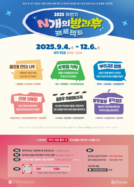자세한 사항은 연수기획부, 삶디센터 또는 카카오톡 채널 ‘n개의 방과후 프로젝트’로 문의하면 된다.