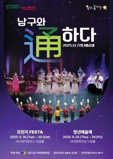 조재구 남구청장은 “많은 예술인을 배출한 남구가 열정으로 뭉친 청년 예술인들이 마음껏 기량을 펼칠 수 있도록 '2025 남구청년 예술제'를 통해 적극적으로 지원하겠다.”라고 전했다.