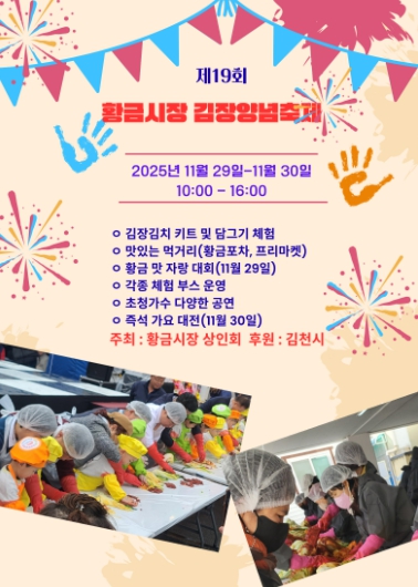 이번 축제는 김천시의 대표 겨울 행사로 자리매김한 황금시장의 김장양념축제를 보다 많은 시민이 즐길 수 있도록 참여형 프로그램 중심으로 구성한 것이 특징이다.