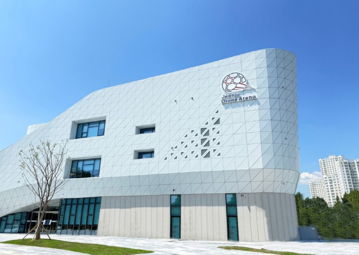 덕진구 혁신로 일원에 조성된 전주국제드론스포츠센터는 지난 2021년부터 4년간 총사업비 146억 원이 투입돼 연면적 3980㎡에 지상 3층 규모로 지어졌으며, 다가오는 전주드론축구월드컵의 주경기장으로 활용될 예정이다.