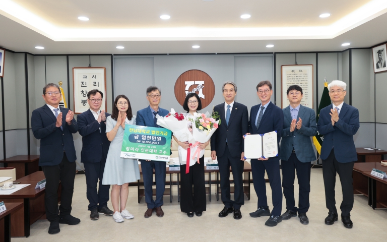 전남대학교 철학과 정미라 교수가 인문대학 2호관 개축에 힘을 보태기 위해 대학발전기금 1천만 원을 기부했다.