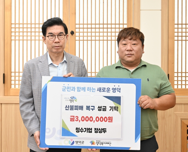 김광열 영덕군수는 “이번 기탁은 지역사회의 따뜻한 연대와 협력이 무엇보다 중요하다는 것을 다시 한번 일깨워 준다”며, “기탁하신 성금은 피해 복구와 주민들의 빠른 일상 복귀에 큰 도움이 될 것”이라고 고마움을 표했다.