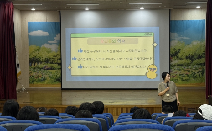 이번 교육은 ‘디지털 세상에서 나를 지키는 법’을 주제로 ‘챗지피티(GPT) 성교육’의 저자 김민영 작가를 초빙해 진행했으며 학생 발달 단계에 맞춘 학년별 프로그램, 가정에서 실질적 지도가 가능하도록 돕는 보호자 연수로 나누어 운영했다.