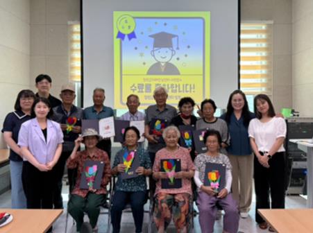 또한 마지막 회기인 8월 7일에는 프로그램 종강식을 진행하며 수료증 전달과 색종이 꽃다발 증정, 다과회를 함께 하면서 프로그램 건의사항과 각자의 소감을 나누는 시간을 가졌다.