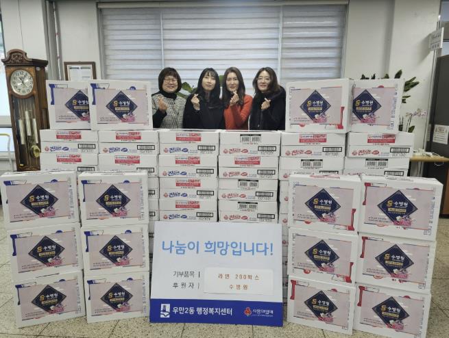 한편, 이날 기부된 라면 200박스는 우만2동 행정복지센터를 통해 홀몸 어르신, 저소득 가구 등 도움이 필요한 이웃들에게 전달될 예정이다.