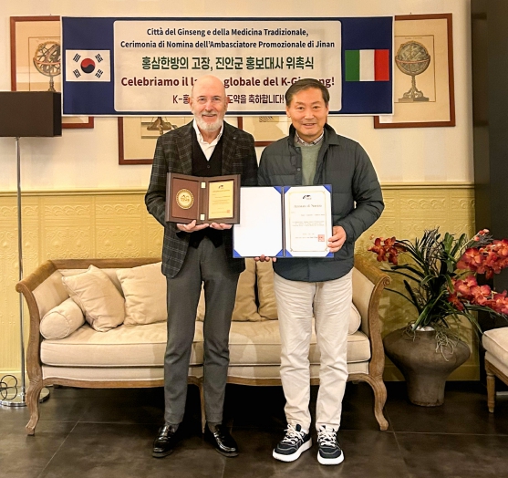 지난 8월에도 나르디 박사는 바티칸 수도원 관계자와 함께 진안군을 방문해 인삼 재배지와 홍삼 가공시설을 둘러보는 등 지속적인 교류를 이어왔다. 이번 위촉은 이러한 협력의 연장선에서 추진됐다.
