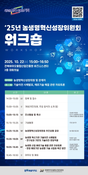 전북도는 올해 위원회 운영을 통해 그린바이오, 푸드테크, 스마트농업·원예, 종자, 반려동물 등 5개 분야에서 총 25건의 기술 수요조사서를 도출했으며, 이 중 1,765억 원 규모의 5개 대형사업 아이디어를 연말까지 구체화할 계획이다.