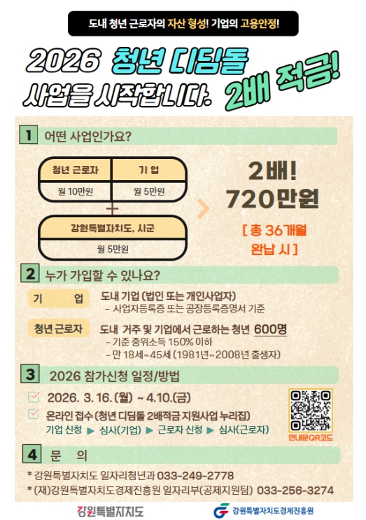 이 사업은 강원특별자치도가 추진하는 청년 자산형성 지원 정책으로, 청년이 매월 10만 원을 저축하면 기업과 지자체가 추가 적립하는 방식으로 운영된다.