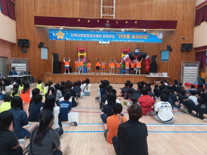 행사는 관내 지역아동센터 아동들의 댄스를 시작으로 학교 학생의 댄스팀이 보여주는 무대에 이어 체육 활동을 즐길 수 있는 한여름 운동회 순서로 진행됐다.
