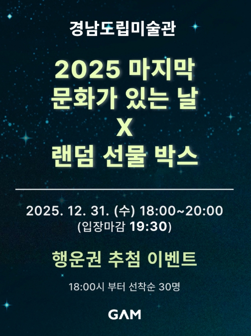 이날 미술관은 전시실을 무료 개방하며, 관람 시간 또한 오후 8시까지 연장 운영된다. 오후 6시부터는 미술관을 찾은 관람객 중 선착순 30명에게 참여 기회가 주어지는 ‘행운권 추첨 이벤트’가 진행되며, 참여자에게는 랜덤 선물 박스 등 다양한 경품이 증정된다.