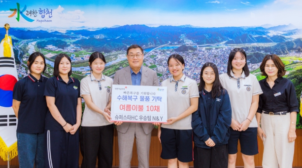 19일 오후 합천군청에서 열린 전달식에서 ‘N&Y’ 팀은 여름이불 10채(시가 50만원 상당)를 기탁했다. 이번 성품은 지난 대회에서 우승하며 받은 상금을 모두 활용해 마련된 것으로, 학생들의 자발적인 뜻이 담겨 더욱 의미를 더했다.
