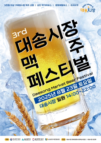 이윤형 대송시장 상인회장은 “대송시장 맥주 페스티벌은 전통시장을 부담없이 찾을 수 있는 계기를 만들고, 지역 소상공인에게도 활력을 줄 수 있는 여름 이벤트이다. 가벼운 맥주 한잔과 함께 대송시장의 따뜻한 정을 느껴보시길 바란다.”라고 말했다.