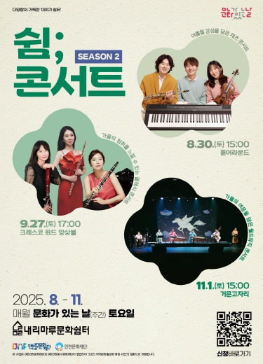 공연은 오는 8월 30일부터 11월 1일까지 매월 문화가 있는 날 주간 토요일에 열리며, 재즈·클래식·월드뮤직 등 다양한 장르의 무대를 선보일 예정이다.