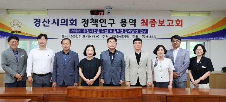행복경산연구팀 의원들은 “이번 최종보고회를 통해 도출된 정책 제안들이 향후 경산시의 저수지 수질관리 체계 수립과 생태환경 복원, 지역민의 생활 만족도 향상에 실질적으로 기여할 수 있도록 최선을 다하겠다.”고 밝혔다.
