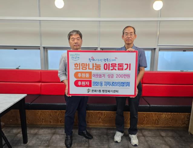 이번 성금은 지난 6월 진행된 '제4회 글꽃 플리마켓'을 통해 조성한 수익금 55만원과 문화1동 지역사회보장협의체 회원들이 자발적으로 마련한 성금 145만원을 더해 마련됐다.