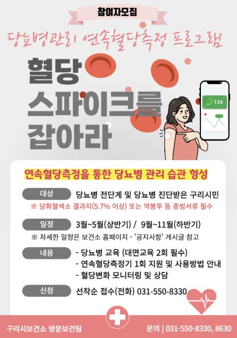 백경현 구리시장은 “구리시의 당뇨병 진단 경험률이 매년 증가하는 추세인 만큼, 많은 시민이 참여해 당뇨병 자가 관리 능력을 기를 수 있기를 바란다”라고 말했다.