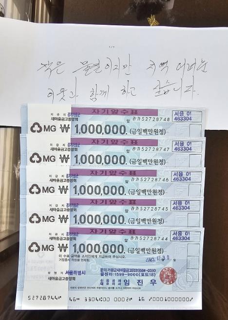 청평면의 ‘얼굴 없는 천사’로 알려진 이 기부자는 2016년부터 현재까지 10년째 익명 기부를 이어오며 매년 빠짐없이 성금을 전달해 오고 있다. 익명의 기부자가 전달한 봉투에는 “작은 물질이지만 지역의 어려운 이웃과 함께 하고 싶습니다.”라는 내용과 함께 100만 원권 수표 5장이 담겨 있었다.
