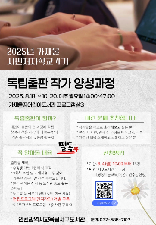 시티트리뷴 - 인천광역시교육청서구도서관, 글쓰기부터 출간까지!‘ 독립출판 작가 양성과정’ 참여자 모집