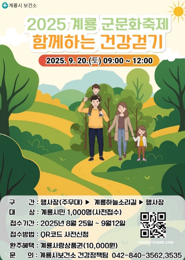 참가 신청은 QR코드를 활용한 온라인 접수로 진행되며, 행사에 참가한 완주자에게는 계룡사랑 상품권 1만 원을 지급할 계획이다.