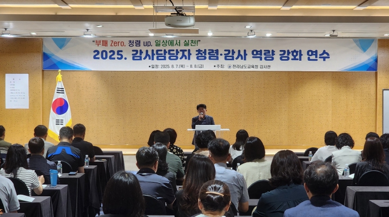 김재기 감사관은 “이번 연수는 앞으로 어떤 방향으로 감사업무를 해나가야 할지, 또 현장에서 어떤 도움이 필요한지 함께 이야기 나누고 지혜를 모으는 시간”이라며 “여러분들의 전문성과 열정을 바탕으로 청렴하고 신뢰받는 전남교육이 실현되기를 바란다.”고 말했다.