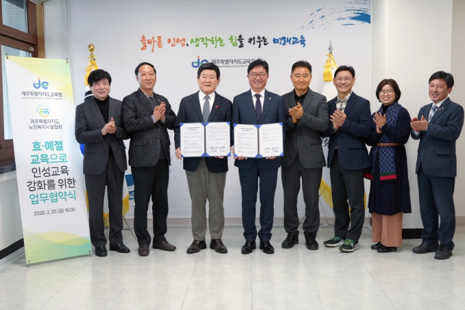 양 기관은 앞으로 노인복지시설 인근 학교 학생들의 봉사활동 지원, 제주도교육청 운영 공공시설 이용 등을 위해 상호 협력하기로 했다.