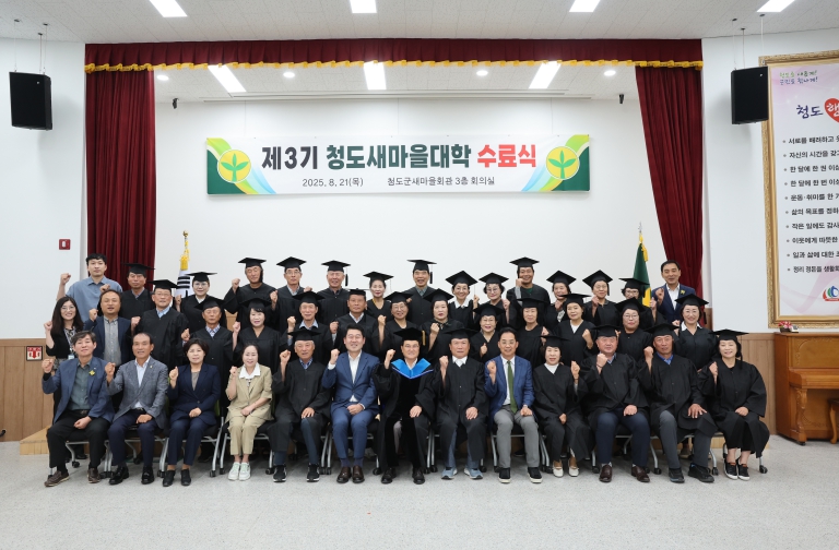 김하수 청도군수는 “배움에 대한 열정으로 끝까지 교육을 완주해 수료의 영광을 안게 된 수료생에게 축하드린다”며 “교육을 통해 쌓은 지식과 경험들이 밑거름이 되어 군민 모두 행복한 청도가 되기를 바란다“고 말했다.