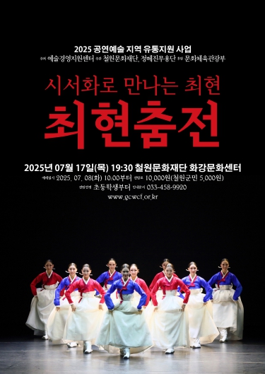 공연 예매는 철원문화재단 홈페이지에서 오는 17일까지 예매 가능하며, 공연 관람료는 철원군민 대상 5천 원이며 공연 예매자 전원 사은품 증정도 진행한다. 공연 관련 자세한 정보는 철원문화재단 홈페이지 및 화강문화센터에서 확인할 수 있다. (문의 : 033-450-9920)