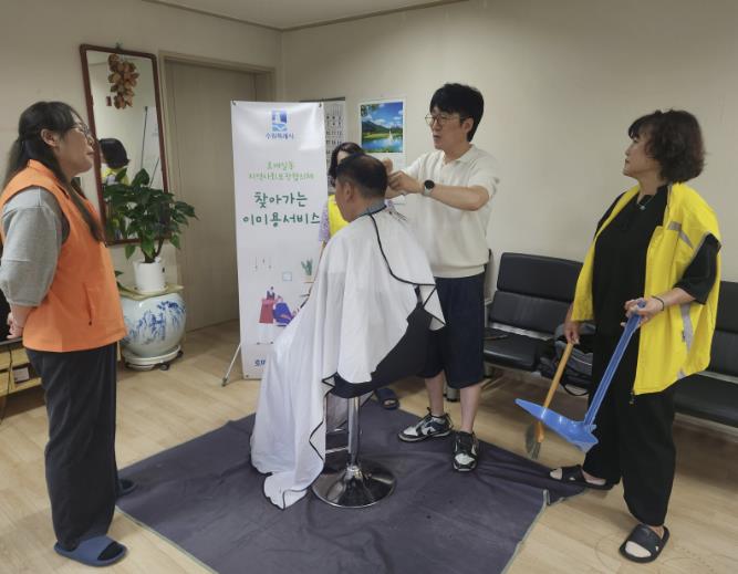 이 사업은 호매실동 지역사회보장협의체, 헤어스타일N의 재능기부로 진행되며, 아파트 경로당을 중심으로 관내 거동이 불편한 저소득 어르신들의 커트 등을 돕는 찾아가는 미용 서비스이다.