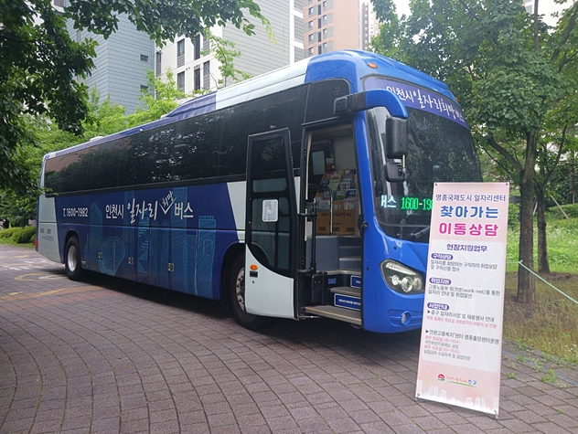 특히 ITP(인천테크노파크)에서 지원하는 버스에 중구청 영종국제도시 일자리센터 직업상담사가 탑승해 ▲일자리 상담 ▲이력서 및 자기소개서 컨설팅 ▲채용행사 안내 ▲일자리 정책 소개 등을 지원한다.