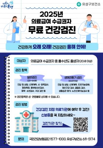 정용래 유성구청장은 “이번 건강검진으로 질병을 조기에 발견하고 적절한 시기에 치료받을 수 있길 바란다”라며 “주민 모두가 건강 관리에서 소외되지 않도록 다양한 지원 정책을 추진하겠다”라고 말했다.