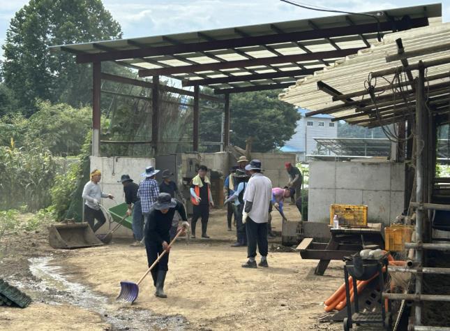 이날 설악면 이장협의회 회원과 행정복지센터 직원들은 특별재난지역으로 지정된 조종면 상판리 대추나무 밭에서 토사와 자갈을 제거하고, 신상리 축사의 토사 및 쓰레기를 수거하는 등 신속한 생활 터전 복구를 지원했다.