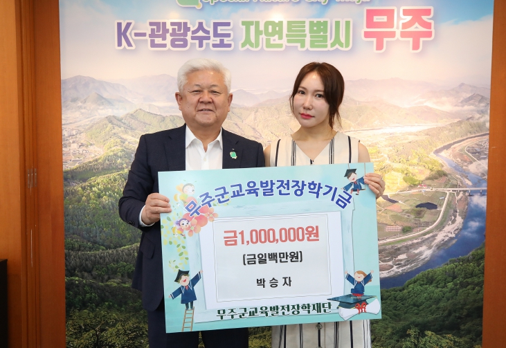 박승자 씨는 "장차 무주를 이끌고 나갈 아이들에게 꿈과 희망을 심어주고픈 마음에 장학금을 전달하게 됐다"라며 “다른 것보다도 아이들의 적성과 소질을 살리는 데 장학금이 쓰일 수 있다면 좋겠다”라고 전했다.