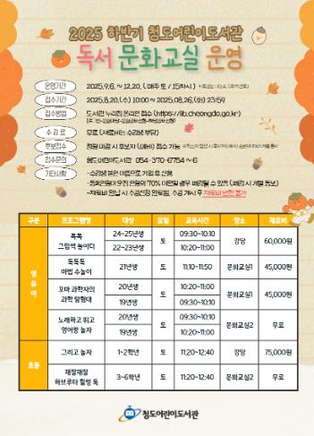 자세한 사항은 청도어린이도서관 누리집 또는 전화를 통해 확인할 수 있다.