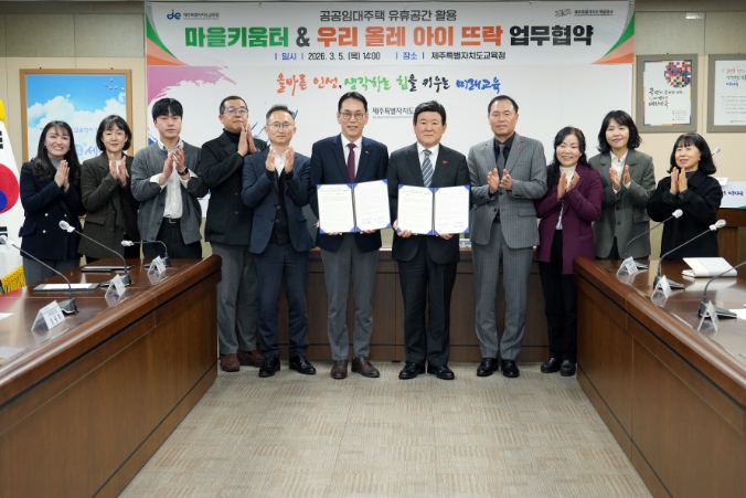 이번 협약은 제주도개발공사의 공공임대주택 내 유휴공간을 학교 밖 돌봄 공간인 ‘마을키움터’로 조성해 지역의 돌봄 공백을 해소하고 공공기관의 자산 환원과 교육청의 돌봄 시스템을 결합해 지역사회가 함께 아이를 키우는 교육공동체 모델을 구축하기 위해 추진됐다.