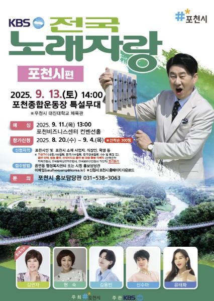 백영현 포천시장은 “전국노래자랑은 세대를 아우르는 프로그램인 만큼, 시민 모두가 함께 즐기고 화합하는 축제의 장이 될 것”이라며 많은 참여를 당부했다.