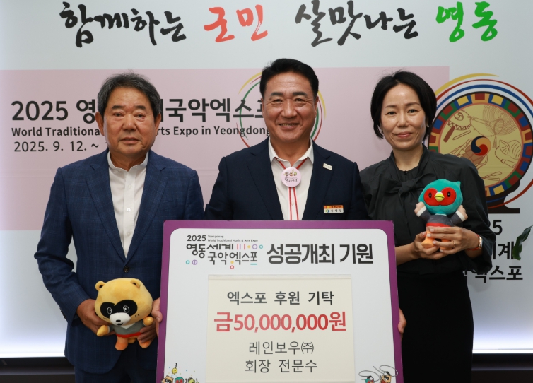 전문수 회장은 “영동은 국악의 본고장으로, 2025 영동세계국악엑스포는 지역의 문화적 위상을 널리 알릴 수 있는 소중한 기회”라며 “엑스포가 성공적으로 개최되어 지역 경제와 문화 발전에 크게 이바지하길 바라는 마음으로 기탁을 결정했다”고 말했다.