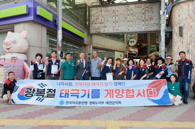 또한 예천읍과 호명읍을 비롯해 관내 12개 읍·면에서 회원들이 각 지역 행정복지센터나 주요 지점에 모여 상가와 주택가에 태극기를 배부했으며 총 320개의 태극기가 전달됐다.