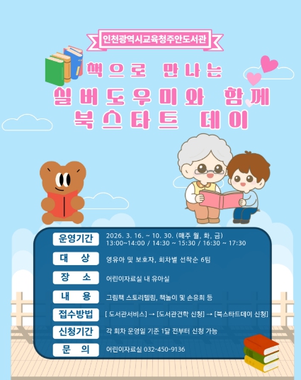 참여 신청은 주안도서관 누리집에서 3월 9일부터 선착순 진행되며, 자세한 내용은 주안도서관 누리집을 확인하거나 어린이자료실로 문의하면 된다.