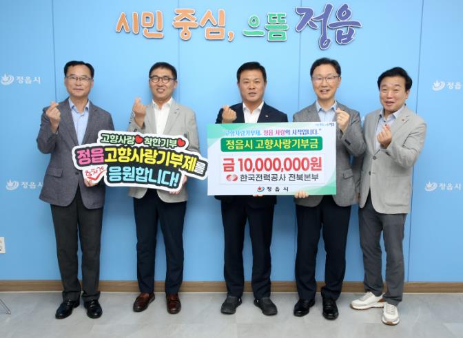 지난 23일, 한전 전북본부 연원섭 본부장을 비롯한 임직원들은 정읍시에 기부금을 전달하고 고향사랑기부제 활성화에 함께 뜻을 모았다.