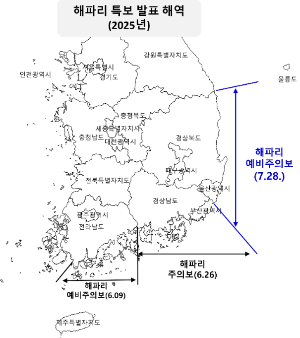 전재수 해양수산부 장관은 “해파리 특보가 발표된 해역의 지자체 등 관계기관과 협업하여 해파리 어업피해 방지대책에 따라 피해가 최소화되도록 신속히 대응해 나가겠다.”라며, “어업인과 해수욕장 이용자 등 국민 여러분께서는 해파리 쏘임사고 등 안전사고에 각별히 유의해 주시고, 해파리 발견 시 모바일 웹(해파리 신고)으로 적극 신고를 부탁드린다.”라고 말했다.